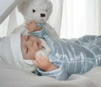 Ich bin Leni und 50 cm groß. Ich bin eine süsse Freundin zum Spielen. Ich bin eine Oberndörfer Künstlerpuppe und habe einen hübschen kuscheligen blauen Schlafsack. Dazu passend eine schicke warme weiße Mütze Mein Kopf, meine Hände und Füße sind aus Softtouchvinyl hergestellt. Mein Körper ist aus weichem Stoff der mit softer Baumwolle gefüttert ist, so dass ich schön kuschelig bin. Ich bin zum Rebornen geeignet. Preis: Ab 44,50 EUR, inkl. 19 % MwSt. zzgl. Versandkosten